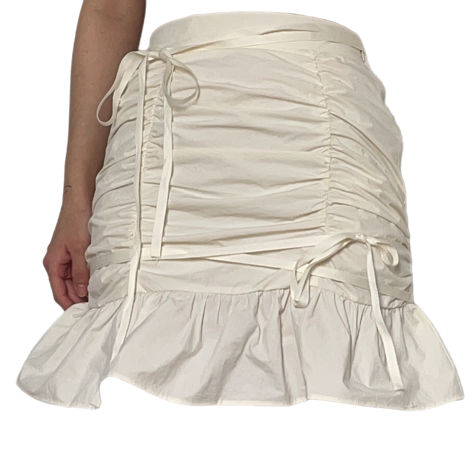 Self-tie drawstrings at sides.